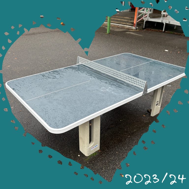 Als besonderes Highlight des Jahres hat unser Förderverein auch unsere Hofpause noch einmal aufgepeppt. So wurden viele neue Materialien für die Spieleausleihe beschafft und eine hochwertige, wetterfeste Tischtennisplatte.