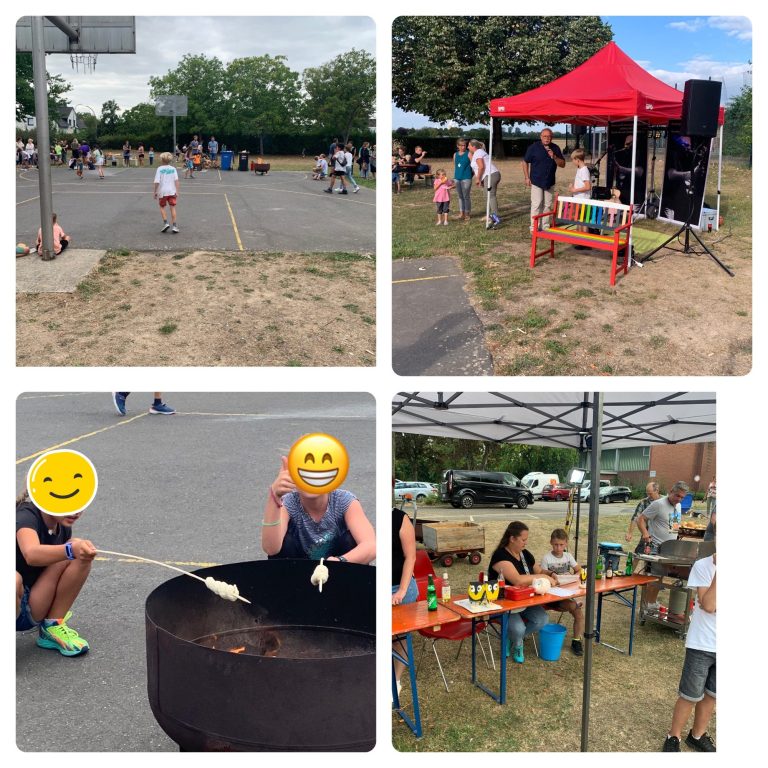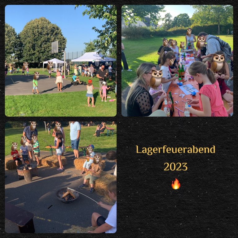 Am 19. August 2022 hat der Förderverein der Eulenschule zu einem gemeinsamen Lagerfeuerabend eingeladen. Die Vorfreude auf diesen Abend war so groß, dass bereits vorab über 150 Karten verkauft wurden. Ab 17 Uhr trafen sich auf unserer Wiese vor der Schule viele Eulenfamilien. So konnten die Familien der Erstklässler neue Kontakte knüpfen und einen ersten Eindruck gewinnen, wie die Eulenschule Feste feiert. Auch viele ehemalige Schüler*innen, Eltern und auch Lehrer*innen sind noch einmal zur Eulenschule gekommen und konnten in Erinnerungen schwelgen.