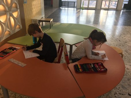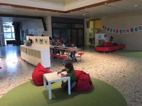 Unser Wunsch ist es „dynamische Lernlandschaften“ zu schaffen, die sich den individuellen Bedürfnissen der Kinder entsprechend ganz unterschiedlich anpassen. Aus diesem Grund ist auch unsere Aula „Lernraum“. Hier können sich Kinder aus verschieden Klassenstufen treffen und gemeinsam arbeiten.