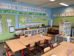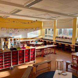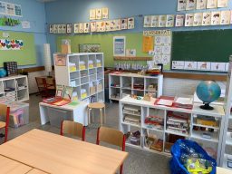 Das Leben und Lernen der Kinder muss sich in der Klasse widerspiegeln, d.h. Arbeitsergebnisse und auch Fotos aus dem Schulleben werden an den Wänden oder auf Ausstellungstischen dokumentiert Pflanzen, die von den Kindern versorgt werden, machen die Klasse wohnlicher. Arbeitsmaterialien werden übersichtlich auf offenen Regalen, die oft auch als Raumteiler genutzt werden, angeboten.